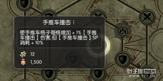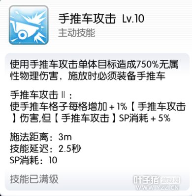 我们来看一下我所说的技能,就是手推车攻击(单体)和手推车撞击(AOE),由于是平民很穷,我只测试了手推车攻击,并且只点了一级。我附上两张图,分别是没点亮星盘,以及点亮了一级星盘的伤害(均为无牧师无料理状态)。