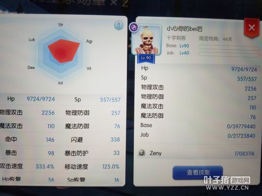 2.下面是不加str的。按照目前我的加点总luk为60来测算,素质攻击为82,面板攻击为2143,最终暴击伤害为6679。