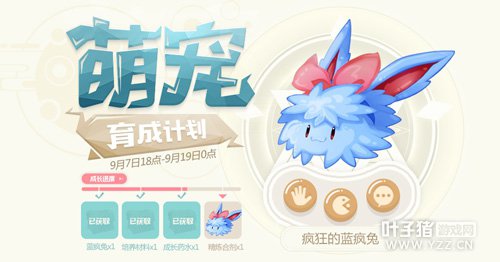 为了帮助萌新快速成长,国家地理联合米德加尔特王国推出“修行成长礼包” 正式服活动时间:9月12日5点-9月19日5点 活动内容: 活动期间达到一转职业的冒险者都将通过邮件收到「修行礼包」。 礼包内容: 「修行礼包」:仅1转职业可开启,开启后获得「小型JOB药水」*5、「小型BASE药水」*5、「信仰之证」*10、「银质勋章」*5、「2转修行礼包」*1。 「一转修行礼包」:仅2转职业可开启,开启后获得「中型JOB药水」*5、「中型BASE药水」*5、「来自女武神的馈赠」*2、「金质勋章」*2、「信仰之证」*20、「乐园币」*200、「2转进阶修行礼包」*1。 「进阶二转修行礼包」:仅2转进阶职业可开启,开启后获得「大型JOB药水」*5、「大型BASE药水」*5、「来自女武神的馈赠」*2、「金质勋章」*3、「信仰之证」*30、「乐园币」*500。 Tips: 1、活动开启前为一转职业的冒险者在活动期间登录游戏将会通过邮件收到「修行助力礼包Lv.1」,活动开启前二转和进阶二转的冒险者不在活动范围内。 2、每种修行礼包只能由对应职业阶段冒险者开启,请各位及时使用。 活动二:萌宠育成计划-蓝色魅影疯兔来袭