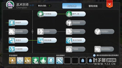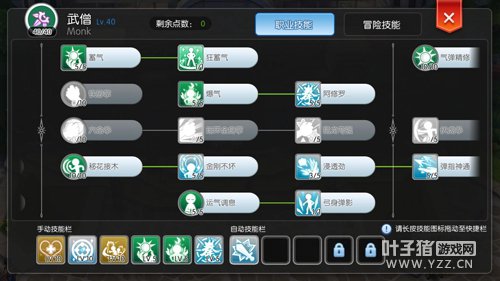其实,二转进阶后技能点数很充裕。有心情不走连招流的话,可以有很多玩法。就算是连招武僧,也可以兼顾阿霸弹指之类,输出能力不俗。 我现在的玩法是阿霸加金刚,没有连招的点数,也没有敏捷,所以进阶后那些感觉有些浪费的被动技能,甚至气爆散和猛虎硬爬山,也一并可以学上。 下图是我现在的技能情况,除了没有连招,没有Agi,点数一点都没浪费,非常适合强迫症人士,供参考: