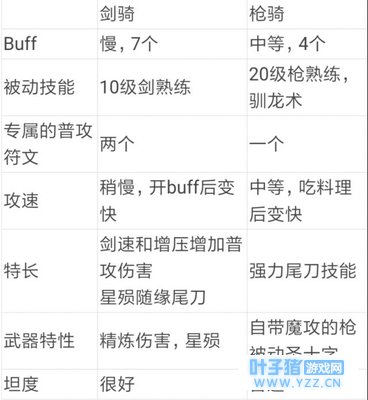 今天研究的新玩法就是:敏枪。 首先我们来看看敏剑的优势: 1. 圣剑在普攻流武器里的强势。 2. 剑速增加和伤害增压的buff。 3. 维持坦度的剑格挡。 那敏枪有什么好呢? 1. 首先,敏剑有着舞王之称。 (剑速增加,伤害增压,剑术格挡,集中攻击,领主光环,附魔之刃,孤注一抛,咦boss呢在哪???) 敏枪就没这么多烦恼,所有拿剑的buff技能和你无关,只需要开四个buff就好了(集中攻击,领主光环,附魔之刃,孤注一抛) 2. 再来,就是被动技和符文。 被动技:剑术修炼和长矛熟练。 剑术熟练只有基础的10级(物攻40/普攻200),长矛熟练有巅峰的20级(物攻280/普攻400)。 被动技:驯龙术,学习之后可以骑乘龙,提高骑龙时候的10%攻击速度,提高25%龙之吐息的伤害,符文骑士骑龙时装备长矛对任何体型怪物的修正效果增加原修正值的100%,体型修正效果最高100%。 (攻速对枪和剑都有效,对枪有特殊体型修正。) 符文:剑枪符文 剑符文的话有: 3个剑术修炼-强效,使[剑术修炼]提供的物理攻击加成+60% 10个高等剑术修炼,使用长剑类武器时忽视物理防御+1% 枪符文的话有: 7个长矛熟练度,使装备长矛类型武器时物理攻击+8 (个人觉得不会相差太远,毕竟剑术修炼的基础属性不高,高等剑术修炼只对没暴击和圣剑星殒有效。) 都有效的普攻符文: 普攻-强效,使剑士系普通攻击受物理攻击加成+3%,普攻攻击力提高40 灵气剑-强效,每级灵气剑额外获得5点物理攻击力 附魔之刃-魔化,[附魔之刃]计算魔法攻击额外+5% 大部分符文无论是枪剑都共享而且有效的。所以论被动技能和符文,剑枪都不会有太大的分别。 (然而剑速和增压有巅峰buff你怎么不说?别急,都说了后面会提到补偿的部分) 3. 天生攻速 枪和剑的天生攻速是不一样的, 由于N年前谜之策划的攻速惩罚给了眼神错的人 ,骑士用剑天生比枪慢。 然而剑速一开马上被抛离, 我少开buff我自豪,有什么是钱不能解决的?给我来一打敏捷料理和觉醒谢谢。 补充一个数据: 重炮站街攻速310,觉醒药水后362 圣剑站街攻速243,开剑速后347 多谢@优雅的喵呜提供数据。 4. 尾刀技能 剑技没有特别好的尾刀技能,需要靠欧洲来的流星雨。 枪则有海量技能,螺旋击刺,连刺,急速扎刺。 这就是枪骑少了增压和剑速巅峰buff,但补偿了骑士尾刀的王牌能力。 而且由于三转能力和魔攻挂钩,点智力后SP稍微会比较多一些,buff却放少了,因此挂机时,也可以试试穿插螺旋补足伤害。 选择螺旋是因为sp考量,4秒一次30sp比较不会被吸干。 5. 武器 剑骑的圣剑,拥有最可怕的精炼属性。 而来到三转,枪骑有一个决定性的武器能力,那就是[附魔之刃]。 这技能只加强普攻和狂击,所以技能流的枪骑是不能用的,但普攻流枪骑是可以用的! 驯龙者长枪(魔法攻击+420),重炮长矛(魔法攻击+270),旗鱼枪(魔法攻击+247),这些都是自带魔攻的枪,虽然看起来驯龙者长枪的攻击属性完爆,不过副属性都是和喷火有关,反而重炮的攻速和被动十字也很有吸引力,按各人需要选择。