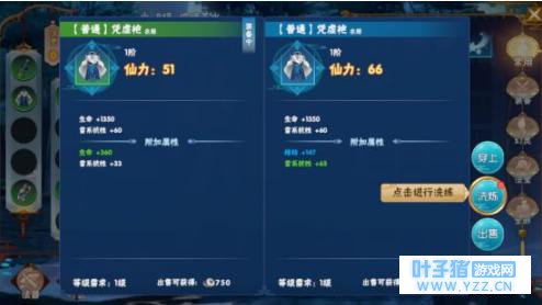 装备鉴定条件: 1、装备鉴定时需符合鉴定等级,若低于鉴定等级则无法鉴定; 2、鉴定需花费一定的银两。 装备洗炼 装备洗炼也就是将其他装备上更好的属性添加至自身所穿戴装备。传承其他装备的优秀属性,从而提升自身装备的仙力。