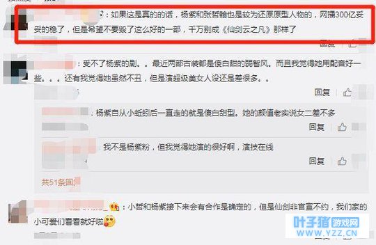 关于男主女主的消息一公开就炸开了锅,引来很多争议。首先有网友表示支持,认为杨紫挺不错的,也有网友认为杨紫与张哲翰一起出演男主女主还是比较还原原本的人物,更是说到如果真个阵容是真的,网播收视是稳了,这部剧肯定火。十四觉得如果口碑很好的话,这么大一个IP,肯定会火。