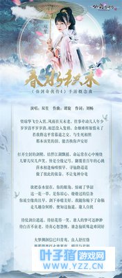 春水流东积木成林 心有爱恨执剑天涯 “春水流东,积木成林”意为:心有爱恨、执剑走天涯的侠者,将愁绪如水般流去,却在岁月流逝的同时,与一群惺惺相惜的人,携手共同守护正义。这一句歌词也道出了《仙剑奇侠传4》手游赋予玩家次时代唯美浪漫的仙侠大世界中,自在地御剑飞行,结交仙侣,幻化萌宠并且与好友并肩作战。 人气歌手双笙天生就能完美演绎古风音乐优美的旋律和独特的意境,嗓音带有奇幻空灵之美。而《春水积木》的歌词意境唯美动人,特别是副歌“欲把春水留在你的眼角,惊破了华韶。这一花一草,是你眉心燎燎过的信条”直击心底,一听就想起《仙剑奇侠传4》手游,想起这游戏里那些让人又爱又恨的的经典剧情,恨不得立马执剑走天涯,开启专属于自己的江湖世界。