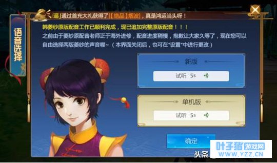 哪怕知道这是制作组的讨好行为,也不会反感。特别是关于韩菱纱的配音,手游里居然准备了两套版本让玩家来选择,更是盒子多出了几分好感。