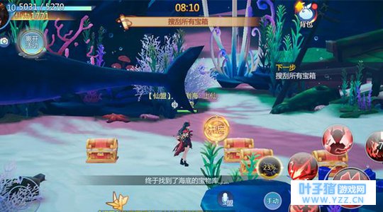 有的时候各位仙友进入下一个房间之后,会遇到小BOSS"幽泉",虽然各位仙友需要不少的时间才能够将其击杀,但是相对应的将其击杀之后,地图上会出现几个宝箱供各位仙友采集。在"东海秘藏"副本中的最后一个房间,会出现大量的宝箱,各位仙友全部开启之后就能够离开副本了。