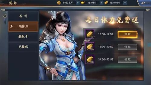 作为首批入驻的玩家,系统给大家的福利必不可少,新手玩家们一定不要错过哟。每日签到便可以领取诸多礼物,连续签到七天还有强力武将关羽相送。每日还有三个时段可以免费领取体力,多余的体力能够让我们反复去刷关卡。如果你有型能够得到兑换码与特权卡的话,更能瞬间起飞。