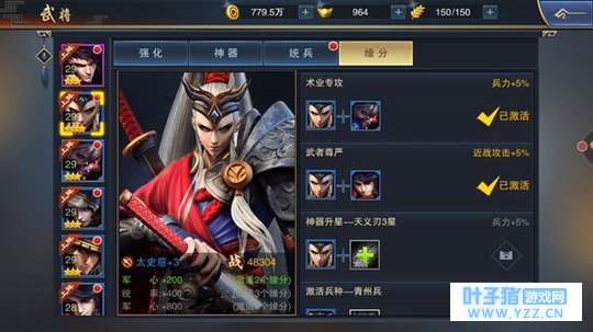 当武将神器升级到指定星级之后,即可激活缘分效果,获得增益属性,不过前期的材料收集较为麻烦,付费玩家可以通关商店宝箱中抽取材料,快速提升神器星级,进而激活缘分。平民玩家则只能依赖日常活动的积累,不过只要坚持下来,激活你的神器也并非难事。 良将带精兵,强军还得名将配 在《血染征袍》之中,每一位武将都会根据自己的属性对应特定的兵种,激活武将缘分兵种,即可激活缘分效果,获得增益属性。想要获得足够的士兵碎片来解锁缘分,最为便捷的就是去杂货店进行收集,运气好的话碰见缘分兵种,千万不要放过,马上收入囊中,相信之后不久,你就能打造一支专属于自己的精英部队。