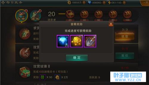 日常任务除了提供主公经验,还包含其他资源奖励,如果想要快速提升主公等级,每天的日常任务可不要错过。 另外完成日常任务和成长任务都可以获得活跃度,活跃度达到指定值,即可领取活跃度宝箱,活跃度宝箱中包含钻石、招贤令、洛阳铲等珍稀道具。