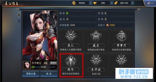 在新版本中,国战系统也将迎来大幅升级, 其中最让人兴奋的当属战场技能。在国战中,玩家可以通过收集技能碎片进而合成相应技能。技能释放不消耗资源但会有冷却时间。使用技能可以提高己方的占领值获取。但敌对双方间的技能特效可以互相抵消。这无疑为国战增加了更多的竞技性和趣味性,非常值得期待。 让武将如虎添翼,战马系统呼啸来袭 在《血染征袍》之前的内测版本中,已经让我们感受到了美人系统的厉害之处。不但可以让玩家收集三国众美女于后宫,还能为主公提供战力上的加成,实乃一举两得之幸事。而在《血染征袍》即将到来的新版本中,战马系统也将呼啸来袭,为我们的武将战力飞升助一臂之力!