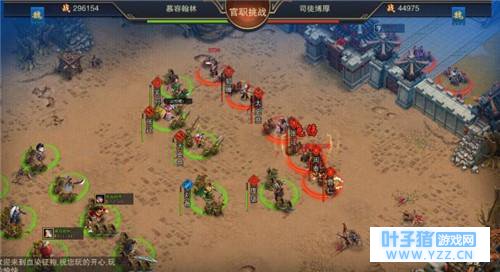 在战斗过程中,默认顺序为步兵队、弓兵队、骑兵队,大家在挑战前面的官职时,最好根据他的阵容提前做好应对,选择一套克制的阵容与其交战,这样会在很大程度上弥补战斗力的差距。在我们成功挑战后,便会占领他的官位,每一位玩家都只能从伍长出发,是否能成为一国丞相号令千军万马,就要看你的实力了。