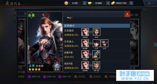 在神器觉醒后,孙策将继续提升虎魂咆哮的能力,达到一个非常恐怖的状态。在武将缘分上,与孙策有着亭岭大战缘分的太史慈是孙策的第一基友,此外便是东吴两位重要的武将周瑜与周泰了。 美女射手,炫目登场 除了重磅神将孙策的登场之外,还有一位神秘的女武将也将一起登场,她就是孙权的宠妃——步练师。作为又一名美女俏佳人,步练师可不仅仅是花瓶,步练师祖先为孔门七十二贤之一步叔乘,后人在秦汉时因战功封淮阴侯,为一方大族。步练师长大后因出落得美丽而被孙权纳为妾室,宠冠后庭并生下二女全公主和朱公主。
