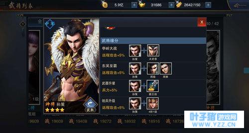 游戏中的孙策 孙策是游戏中的又一位神将,在初始起跑线就与众多人拉开了距离。孙策在游戏中的定位是速攻强袭,强力增益,从某种角度上,与很多玩家钟爱的赵子龙有异曲同工之妙,也许孙策在将来就会成为赵云的强力对手。从属性上来看,孙策的统帅、军心、军略成长程度都非常高,由此可见,在带兵上,孙策一定不弱于常人。专属武将技能虎魂咆哮威武霸气,以江东之虎威视全场,出场便满怒气!能够给敌人当头棒喝,虎啸可以增加全队伤害、移速和暴击,从一出场便全面领先与敌人。