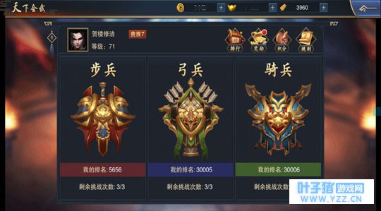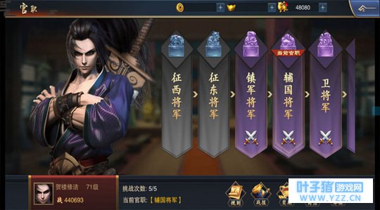官职挑战 当我们的等级与实力达到一定程度的时候,系统便会自动开启官职挑战,《血染征袍》的官职设定遵循历史,从伍长到百夫长,从大都督到丞相,想要成为丞相,便必须一步一个脚印,击败前方的拦路虎才行。官职的高低由你的个人实力所决定,既然如此,提升角色的综合实力便是重中之重,战斗默认为车轮战,也就是我们的步兵队、弓兵队、骑兵队都要上阵比试,所以切记不要顾此失彼,单独发展一个兵种要做到全面发展,才能有备无患。