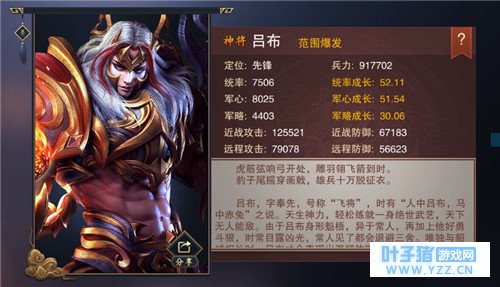 限时抽取神将,圆你霸主之梦 在活动开启的阶段,玩家可以进行抽奖,每次抽奖都会获得一定的积分,只要达到相应的积分就可以领取奖励。活动开启之后,所有玩家都会享有一次免费单抽次数,单抽也会有奇迹发生哟!在免费的次数用完之后,想要再次抽奖就要消耗一定的元宝了,所以想要获得神将的你,一定要早早的充实好自己的小金库,避免与心仪的武将擦肩而过。在活动结束之后,系统会根据玩家的积分累积情况进行排名,并且通过邮件的形式把对应的奖励发送给玩家,榜上有名的玩家自然就会得到梦寐以求的神将啦。 盘点强力神将,实力笑傲群雄 骁勇无敌——吕布