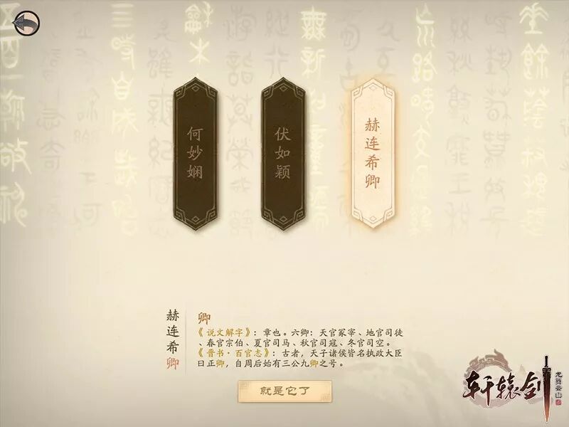除此之外 《轩辕剑龙舞云山》的 随机起名 都会附上 《说文解字》 中相应汉字的 解读与考据 独具诗意 的 古风名字 定能让大家 耳目一新