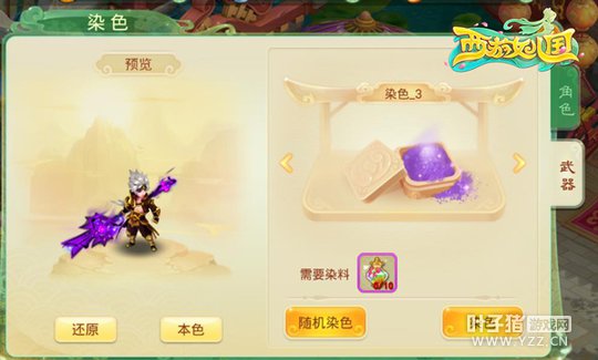 光武染色展示 闪闪发光的武器是每个玩家都梦寐以求的道具,《西游女儿国》的玩家50级开始就能佩戴光武,还可以通过武器染色变换各种造型,搭配服装染色系统,玩家可以个性定制自己的角色形象。光武不仅能够提高角色颜值,还有强力的属性,佩戴之后降妖、过剧情都更加轻松。 轻松养成 8技神宠轻松得