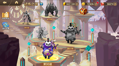 三、试炼之塔 试炼之塔共200层,每层首次通关可获得首通奖励,每5层首次通关可获得宝箱奖励。出战星灵每日凌晨5点开始会自动为召唤土从第1层战斗到最高历史通关层数,并获得相应的通关奖励。历史通关层数越高,星灵每日自动战斗获得的奖励就越多。