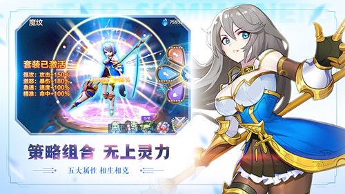【策略为王 相生相克】 《星之召唤士》独创了火、风、水、光、暗五大属性相生相克的新颖玩法,极大地提升了策略的重要性。玩家可以根据自身进度和对手阵容,量身搭配星灵组合,辅以魔纹系统和套装属性,或策应或强攻或防守,大量Buff、Debuff效果如破甲、无敌、沉默、眩晕等等更为战斗创造了更大的玩法深度和发挥空间。畅享策略性与趣味性的完美结合,在《星之召唤士》里玩出深度,玩出水平,成为一代策略大师吧!