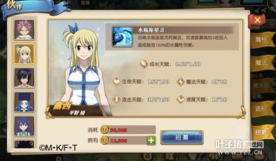 妖精尾巴不会拒绝这种会为同伴流泪的人! 游戏中的她有着一头美丽的金色长发,身材也是完全还原了动漫里的完美比例,在游戏中使用星灵魔法,能召唤水瓶座星灵阿葵亚为她战斗。这样的露西应该没有人能拒绝吧?