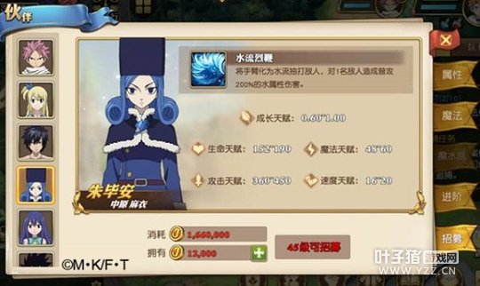在雨中,没人能胜我。 在《妖精的尾巴:魔导少年》中朱毕安的技能是水流烈鞭,非常强力。蓝色外套、蓝色卷发配上蓝色的眼睛,也十分符合她原作中的形象。喜欢朱毕安的魔导士们可千万别错过,将来一定要记得入手!