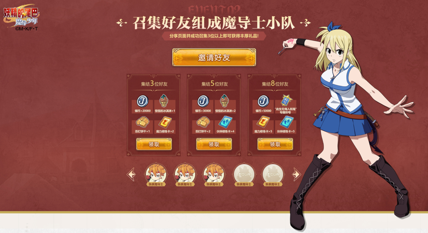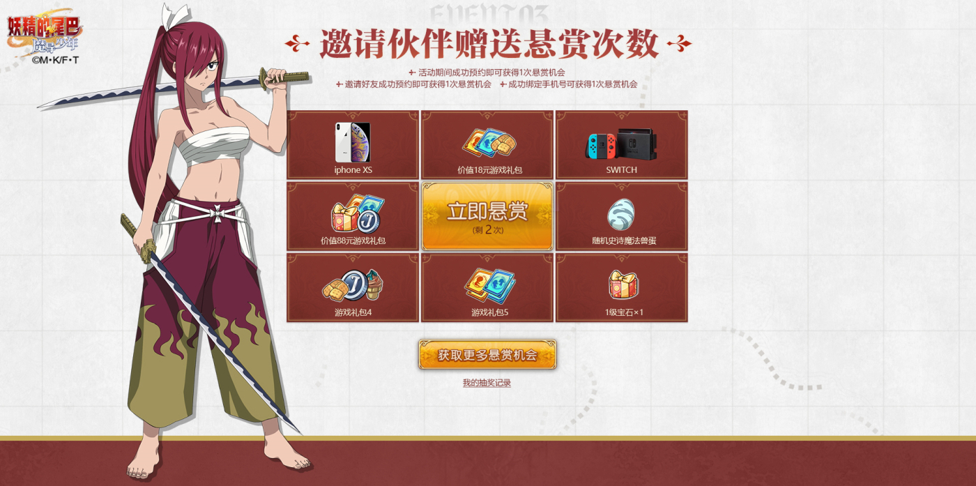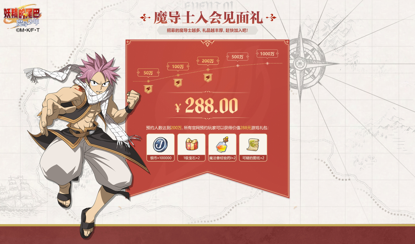 《妖精的尾巴》作为日本人气动漫IP, 其热血的战斗环节以及各个魔导士之间的感情线, 公会伙伴之间的羁绊, 让越来越多的动漫爱好者爱上了妖尾! 据洛洛的可靠消息, 今年妖尾手游将正式与大家见面啦! 不辜负大家的期待! 全新预约页面及游戏重磅礼包已经正式上线, 就让我们来一起看下吧~ 相信大家看到《妖精的尾巴:魔导少年》全新预约页面后, 第一眼看到的绝对是主人公纳兹了, 给人一种非常热血的感觉~ 截至目前,已经有超过500w的魔导士成功入会了哦! 各位魔导士大大现在预约的话 还可以获得非常丰厚的游戏礼包, 这样在游戏上线后, 前期打怪升级就会容易许多啦! 值得一提的是, 游戏礼包会随着预约人数的增长不断升级, 当预约人数到1000万时, 就能解锁最高级别的价值588元预约大奖哦!(588元游戏礼包:银币*100000?1级宝石*2?魔法兽经验药l*2?可疑的图纸*2) 除了预约礼包之外, 各位魔导士大大还可以与自己的好友 组成魔导士小队并肩战斗~ 毕竟游戏中有许多需要多人挑战的副本, 如果在游戏上线前就已经组成魔导士小队的话, 之后挑战这些副本时 就不用因为找不到队友而犯愁啦! 在预约页面邀请3位以上好友的话 还可以获得丰厚的游戏道具哦~ 邀请8名好友即可得“此生无悔入妖尾”称号 各位魔导士大大不仅可以通过邀请好友获得游戏礼包, 还可以获得珍贵的悬赏次数。 使用这些悬赏次数就可以解锁预约的第三重奖励, 在悬赏奖池抽奖,获得稀有的道具奖励哦! 不过具体获得哪一个就要看魔导士们的运气了~ (会抽中IphoneXS,还是Switch呢?) 《妖精的尾巴:魔导少年》全新预约页面正式上线, 福利相当丰厚,还未预约的魔导士们一定要尽快前往哦! |