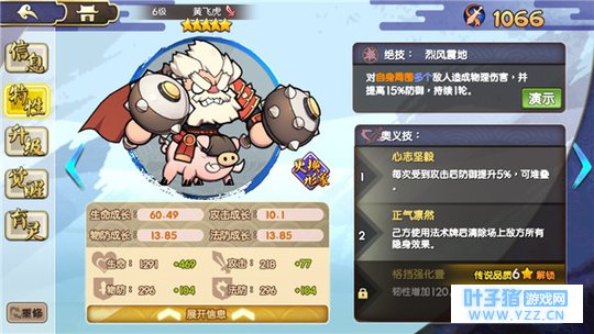 打法分析 由于阎王只有3W血(普通难度下),想要消灭他的话其实非常容易的,但如果要刷多点奖励的话,就要尽可能消灭小纸人,不过由于小纸人会隐身而且要打三下才能消灭,想要多刷还是有点难度的。元气娘在此推荐几个仙人给大家: 黄飞虎 强烈推荐,不仅够肉,而且2奥义“正义凛然”在己方使用法术牌后清除敌方所有隐身效果,天克会隐身的小纸人。