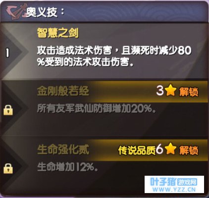 1奥义“智慧之剑”使攻击造成法术伤害,且濒死时减少80%受到的法术伤害。虽然拥有大幅度的法术减伤,但需要濒死时才能发动,加上文殊本身的血量成长也一般,这奥义的作用最多也就多挡一下法术攻击,用处不算大;2奥义“金刚般若经”使所有友军武仙防御增加20%,如果是3个前排的队伍,收益会非常高,建议搭配普贤的减伤奥义,这样前几轮的基本不存在被秒的情况。