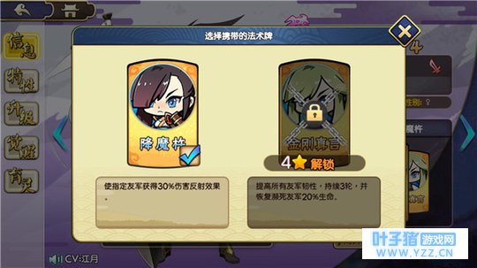 下面我们看看法术牌。“降魔杵”使指定友军获得30%伤害反射效果,这卡的定位其实有点奇怪,因为我们一般会把这卡扔给前排,但前排一般防御比较高,反伤也反不了多少。扔给后排吧,对面又很少能打到后排,所以处境比较尴尬;“金刚真言”提高所有友军韧性,持续3轮,并恢复濒死友军20%生命。韧性影响格挡和被暴击的概率,可以搭配蚩尤使用,但这卡的收益并不明显,所以效果其实不高。