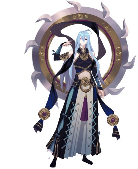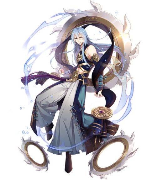 但整体来说,这个角色的设计过程还是比较顺利的,我们采用了 冷色调的青色、蓝色 去凸显本身的 威严感 ,然后搭配 金色 的要素,体现出自身的 尊贵 。背后的 法轮 设计比较的 东方 ,更加注重 仪式感而非功能性 。最后出现的就是大家所看到的这版。