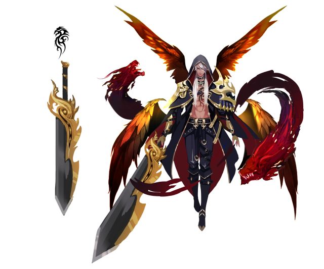 最早的段剑设计是跟着 小说原著的世界观 的描述来的, 黑狱世界的扛把子 。手持聂离给予的 上古神器黑炎剑 ,两条龙守护,背有双翼 ,兜帽下一张 俊美的面庞 。