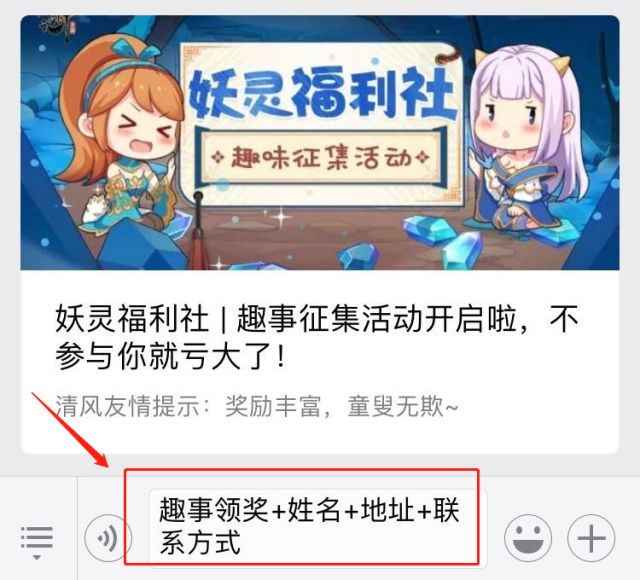 头像 昵称 奖励 胖伯伯 妖神记正版明信片一套+ 精美海报+礼品袋 LYX 妖神记正版明信片一套+ 精美海报+礼品袋 子慕 妖神记正版明信片一套+ 精美海报+礼品袋 许钦镇 妖神记正版明信片一套+ 精美海报+礼品袋 小幸运 妖神记正版明信片一套+ 精美海报+礼品袋 恭喜以上获奖的8位妖灵师大人! 请在 3个工作日 内在 公众号对话框 内发送 “趣事领奖+姓名+地址+联系方式” 奖励会在1个月内发放哦~ ————END———— 今日互动话题 幸运中奖的妖灵师大人 阔以在下方 留言写下获奖感言 哦~ 本次未中奖的大人也不要气馁 会有 更多精彩活动 等着 大人哒! 不知清风这架“时光机” 有木有勾起大人们更多的 快乐回忆 呢? 通通 留言 讲给清风听吧~ 戳 这里进入官网, 预约妖神记 ! 来源:妖神记手游 阅读原文