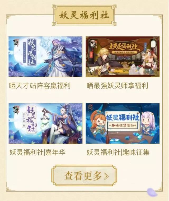 妖灵福利社 这个不用多说了吧~ 超多 福利活动 在此集结! 更有 游戏内的实时福利 在此同步 一切都以为大人们 赢福利 为目的!