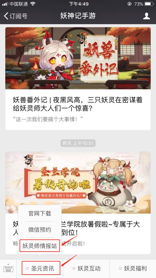 ③点击菜单栏 “圣元资讯” 中的 “妖灵师情报站” ,恭喜大人成功找到情报站入口啦!