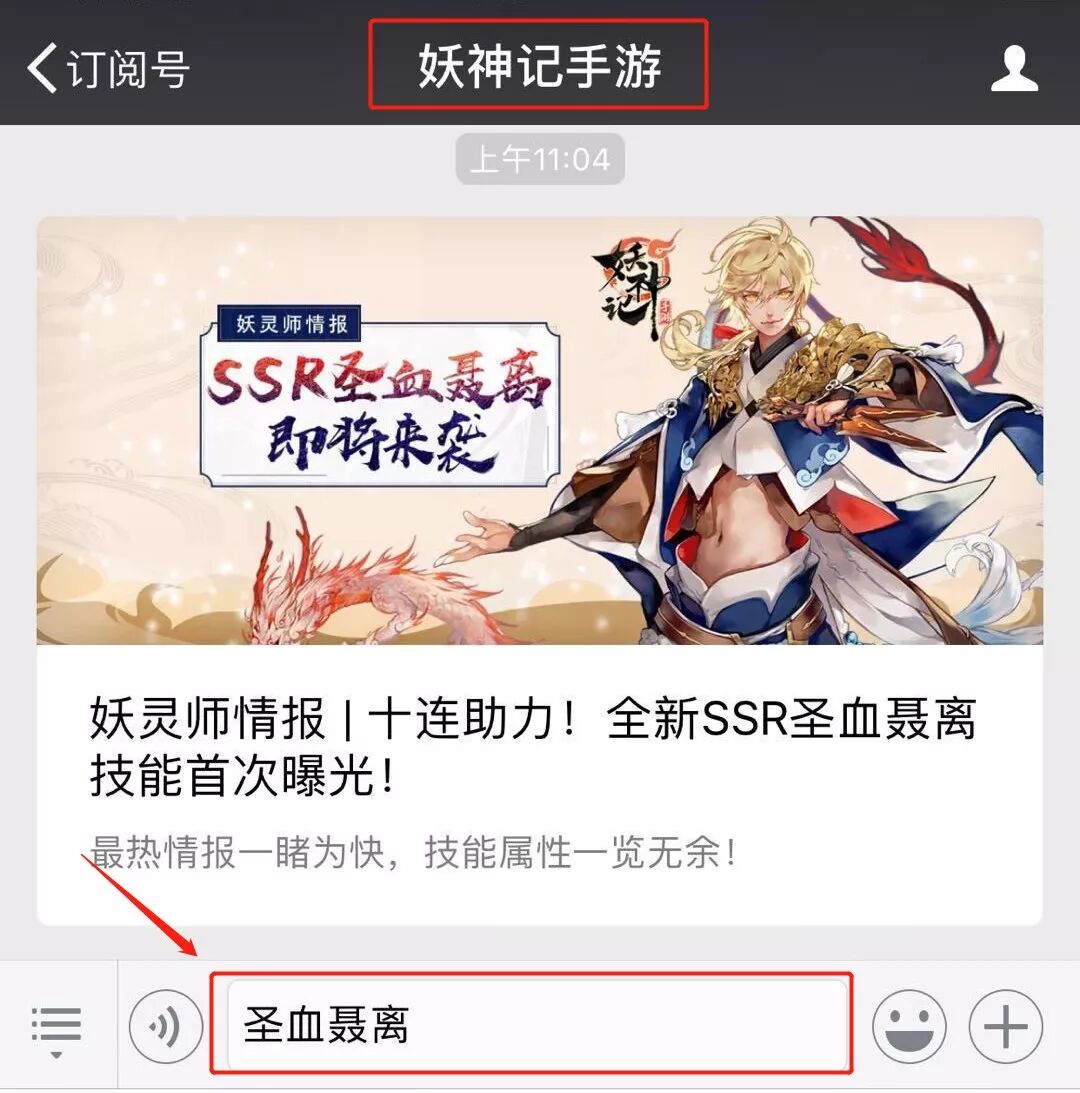 SSR圣血聂离助力活动再添一份! 为了助力大人们抽得 SSR圣血聂离 清风思来想去决定还需再添一把火! 在 公众号对话框内 回复 “圣血聂离”