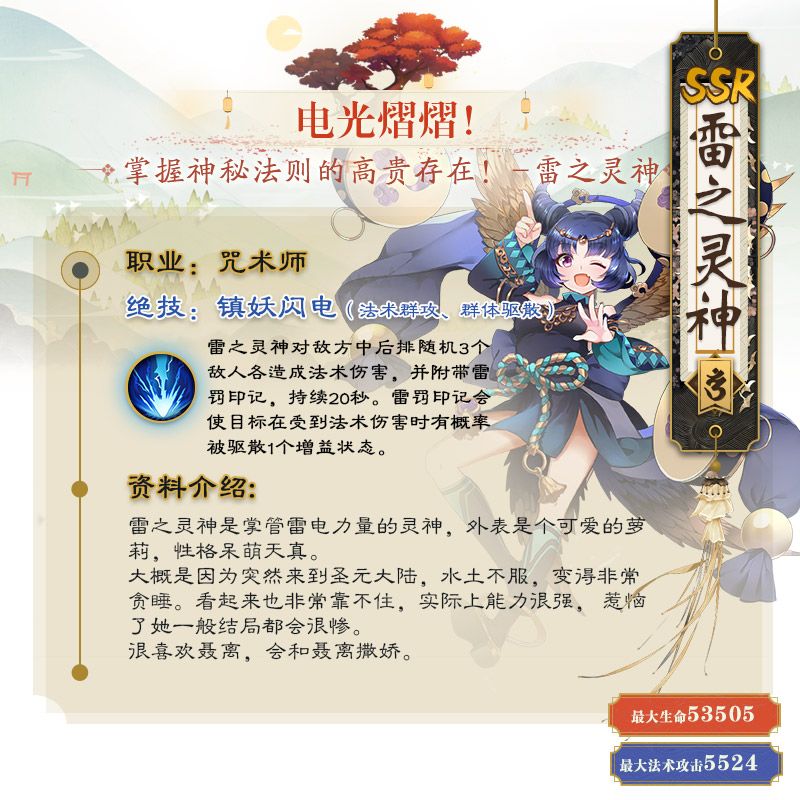 黑炎塔正式开启!限定SSR妖灵师“雷之灵神”登场!