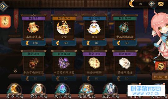 商店系统: 灵石、妖晶、荣誉、妖魂是比较通用的货币,当然还有RMB(滑稽脸)