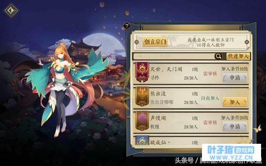玩家进入游戏,熟悉了基本的游戏操作之后,就可以选择自行创建或者加入某一个宗门,创建宗门有等级要求且需要花费一定的资源,好处则是可以自任门主,按照自己的心意来发展宗门,如果小伙伴们对自己的实力有信心,认为自己能够领袖群伦,与群雄争锋,完全可以自创宗门,体验一把当门主的乐趣;而那些不太愿意理会宗门事物或者不希望因为宗门管理而分散精力的小伙伴,则可以选择一个心仪的宗门加入。 很多宗门会有等级方面的要求,这是由宗门门主自行设定的,选择加入宗门时,先要查看自己的等级是否符合要求,如不符合,则需要小伙伴们努力提高等级哦!毕竟从宗门发展的角度讲,每一个宗门的管理者都希望自己的宗门变得越来越强大,加上宗门人数限制,所以往往好的宗门要求都是比较高的。