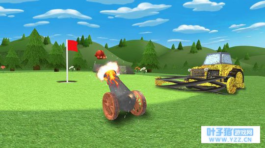 《Meat Cannon Golf》一个用加农炮玩的……奇葩高尔夫游戏,加农炮射出去的也不是炮弹,而是烤鸡。路上还有各种稀奇古怪的障碍物妨碍你的烤鸡入洞,所以说到底是为什么要把烤鸡给打出去啊??