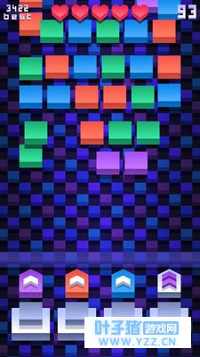 《Mega Missile》是一款打方块游戏,只不过方块是移动的,而你只能通过四个固定的发射口发射与方块同样颜色的方块进行消除,游戏简单爽快,适合碎片时间游玩。