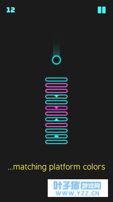 《Neon Descent》是一款单手就能玩的考反应力的小游戏,你只要控制弹跳的小球不断变换颜色与下方的平台一个颜色即可。随手玩玩还是可以的。