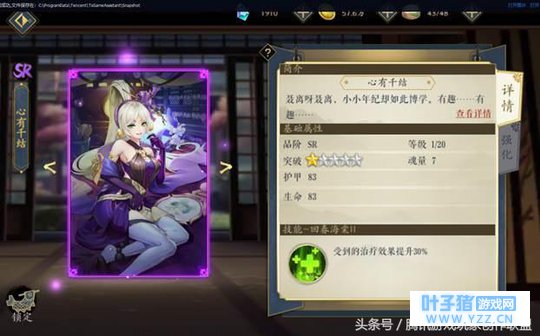 2 、状态类逸事札 此类逸事札能够为妖灵师附加某种状态,大大提高妖灵师的战力,例如 SR 级逸事札未知的情感,其属性为:受到攻击时,有 30 的概率释放防御护罩,提供 20% 的伤害减免; SR 级逸事札心有千结,属性为:收到的治疗效果提升 30% 。这两种逸事札都是适合前排妖灵师使用,能够大大提高生存能力,此外还有适合中后排来提高输出 & 辅助能力的逸事札,小伙伴们可以按需选取。