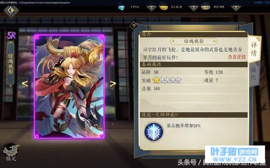 二、逸事札选取 每一张逸事札卡牌都拥有不同的属性,按照属性不同,大概可以分为以下几种: 1 、基础属性增加 此类逸事札能够增加妖灵师的基础属性,如攻击、法强、防御、暴击等,能够大大增强妖灵师的基础战力,如 SR 级逸事札惊鸿艳影,能够提供 20% 暴击率的加成,可以说十分之强力;