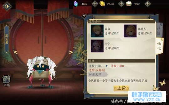 4 、提升妖典等级上限 妖典是游戏中一种收集类玩法,当我们集齐指定的妖灵师以后即可激活,妖典可以为全队所有妖灵师提供光环属性,十分强力;妖典的进阶,则必须要相应的妖灵师达到指定的星级方能进行,所以,提升星级能够帮助妖典进阶,从侧面上提高战斗能力。