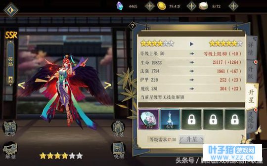 2 、提高等级上限 一星的妖灵师最多只能达到 20 级,便无法继续升级,必须要升星才能解锁更高的等级上限,从 20 级开始,每隔 10 级为一个阶段,直到全部升满 为止。更高的等级上限,意味着更多的属性提升,同样能够大大增强妖灵师的战力。