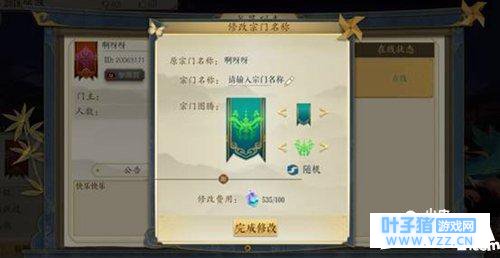 创建宗门 宗门的名字、图腾一但确定,想要修改只能花费一定数量的妖晶,并且一周只有一次修改机会。