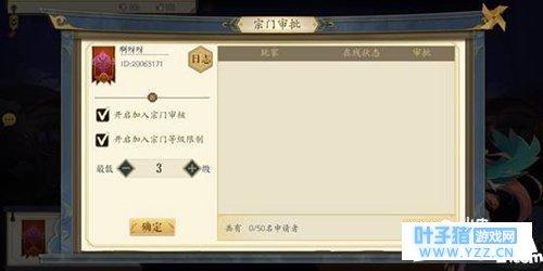 修改宗门名称 上面说了怎么创建宗门,下面简单说以下加入宗门和退出宗门要注意的地方,玩家可以根据宗门id搜索自己想要加入的宗门,或者通过查看其他妖灵师的宗门,申请加入,同时也要注意宗门设置的加入等级,部分宗门会设置需要审批才能加入,这时候就要耐心等待了。如果大家对自己现在的宗门不满意,可以选择退出宗门,不过在你退出宗门后的24小时内是不能申请其他宗门的,一定要注意哟~ 2. 宗门管理 宗门管理可以查看、设置的东西非常多,门主副盟主可以管理宗门以及审批入门申请,权利也比较大,而其他宗门成员则只能查看宗门日志,以及退出宗门操作。这里就不详细为大家描述宗门的职权了。