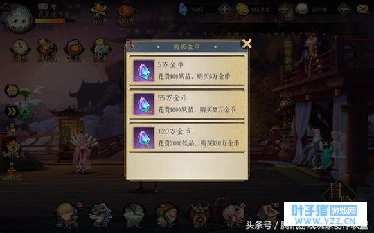购买金币,金币同样作为游戏中的流通货币,也是十分重要的资源,升级、升星等操作都需要使用金币,另外金币还可以在商店中购买心魂,加快心魂收集速度。在游戏中后期,金币的消耗数量非常之大,如果金币不足,可以使用妖晶购买, 2000 妖晶即可获得 120 万金币,价格便宜量又足,谁买谁知道!