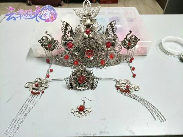 作品来自云裳羽衣原创站 @丨君墨曦 大人们,告诉半半你们看到了什么?是不是以为误进了珠宝首饰拍卖会?据说这琳琅满目雍容华贵的作品来自 丨君墨曦 大人的巧手。 半半总觉得这个作品有些眼熟,思索许久,终于想起来了。原来这是模仿 【彼岸花】 套装制作的一系列饰品!成品十分精致还原,真是辛苦大人啦~