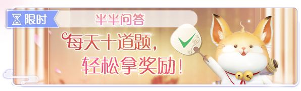 研发大大更是憋出了一系列活动大招 半半问答、情人节、春节、红包样样不落! 问:半半,我要怎么玩半半问答呢? 答:大人们记住了哦~2月6日 5:00 -2月22日 5:00 期间,半半摇身一变成考官,每日十道题,轻松拿奖励!